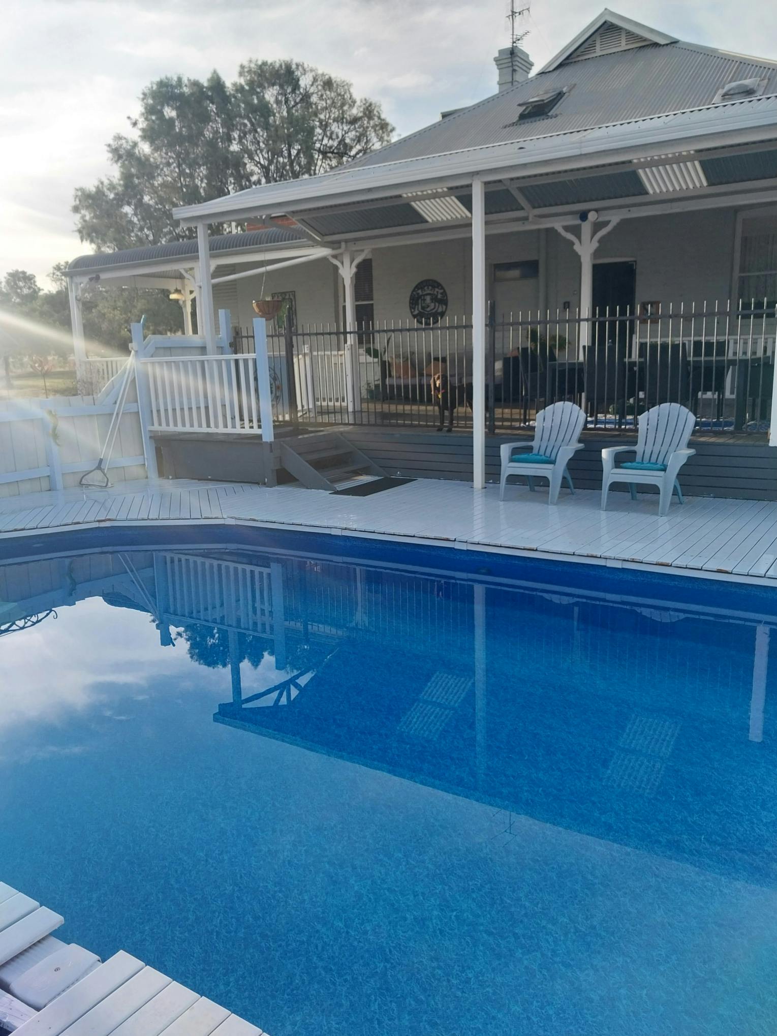 Historic house built on the early 1900's, comprises of four bedrooms and three bathrooms. It has been updated over the years, with additions in keeping with the character of the home such as timber floors, ornate ceilings and decorative trinkets. There are two living spaces - the main open-plan living and dining area with pot belly fire and breakfast bar into timber kitchen: plus, a private lounge/theater room at the front of the property. Two bedrooms and two bathrooms are situated on the ground floor, and another two bedrooms and one bathroom is found upstairs. Verandas surround this majestic old home providing a peaceful view of our gardens, majestic old pine tree and the plentiful birdlife. Burnley has its own outdoor pool for your exclusive use.